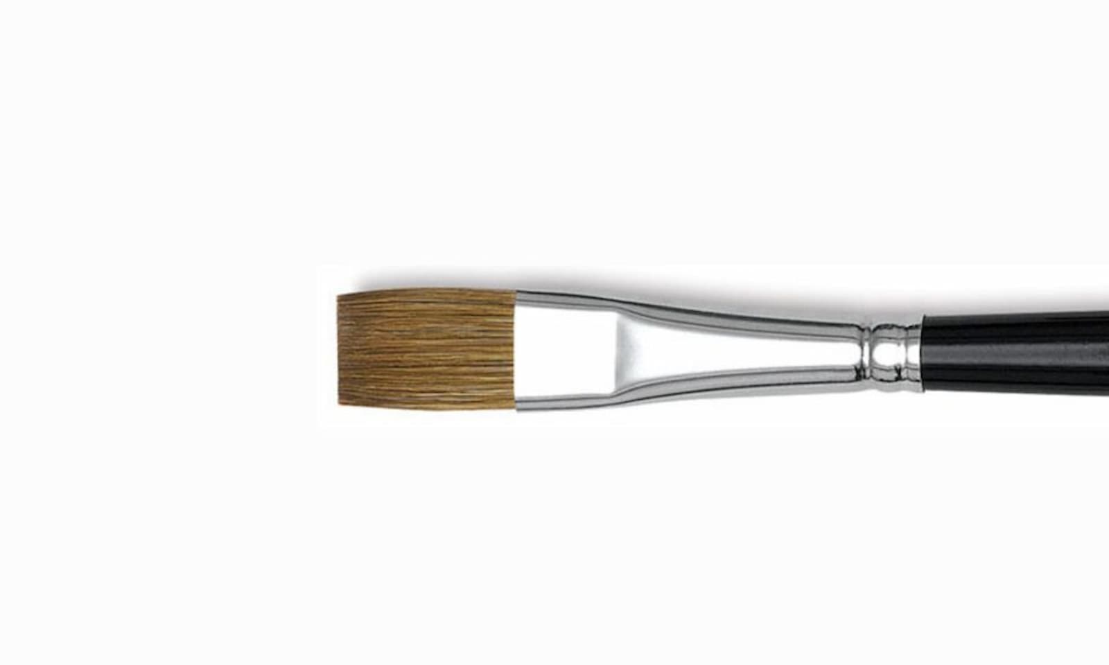 Ciri khas bentuk kuas sapu atau flat adalah melebar dan datar. Kuas flat adalah yang paling banyak dan sering Anda temui. Fungsinya adalah untuk membuat garis-garis tebal, menyudut, dan kaku. Bentuknya yang lebar membuat kuas flat mampu mengisi bidang besar dan luas secara lebih cepat.