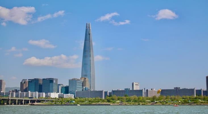 Lotte World Tower di Seoul, Korea Selatan, dengan ketinggian 555 meter, menjadi simbol kemajuan dan modernitas Korea Selatan. Gedung tinggi ini menawarkan pemandangan yang memukau dari puncaknya, termasuk taman berputar dan restoran.