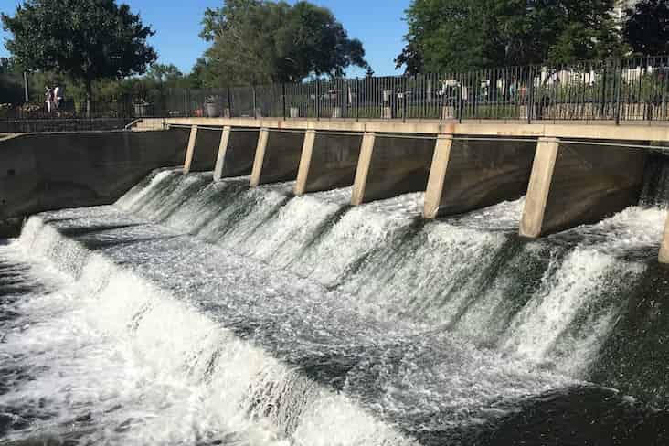 Banyak bendung tidak memiliki pintu air sehingga air akan meluap melewati bagian atasnya untuk turun ke bawah. Sekilas, tumpahan ini terlihat seperti air terjun kecil. Ini karena bendung berguna untuk mengalirkan air dengan mengubah kecepatan alirannya.
