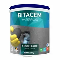 BITACEM Water Plug penyumbat kebocoran seketika. Ketika dicampur air akan menghasilkan adukan semen aktif kuat dan supercepat kering yang siap menyumbat kebocoran beton dan dinding.