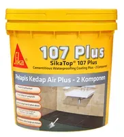 SikaTop-107 Plus terdiri dari 2 komponen, mortar slurry kedap air dengan modifikasi polimer siap pakai, terdiri dari cairan polimer dan semen dengan pasir pilihan dan beberapa admixture. Mempunyai kerekatan dan kemampuan yang sangat baik.