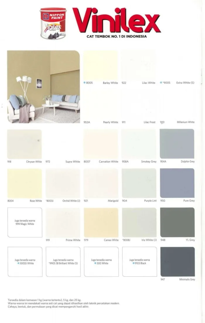 VINILEX adalah cat emulsi berkualitas tinggi dengan basis kopolimer vinyl akrilik. Produk ini mempunyai daya tutup dan daya tahan yang sangat baik, serta lapisan film yang rata dan halus. Cat ini dapat digunakan untuk dinding interior dan eksterior serta langit-langit berbahan dasar asbes, batako, beton, papan, mortar, dan lain sebagainya.