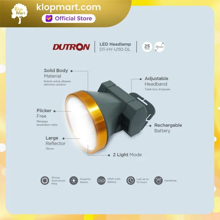 Saat baterai penuh senter kepala dapat digunakan hingga 15 jam
