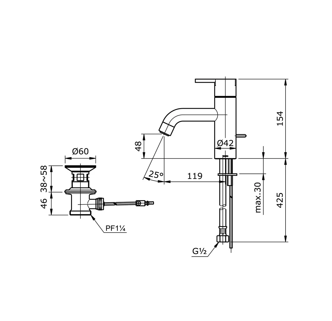 Single Lever Lavatory Faucet with 1¼" Pop-Up Waste – EGO Series