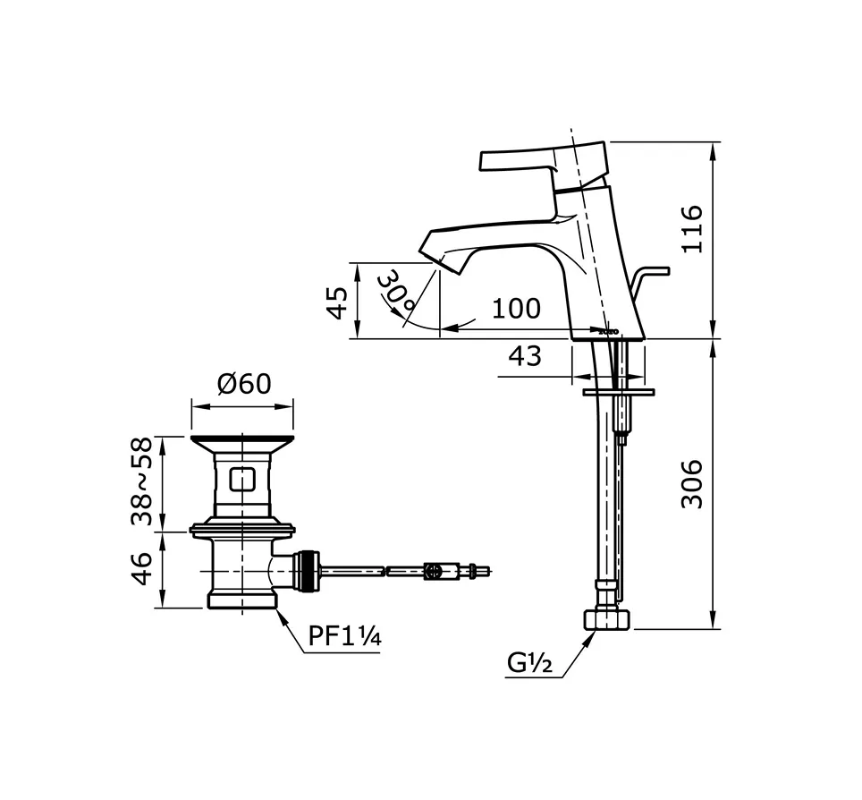Single Lever Lavatory Faucet w/ 1¼" Pop-Up Waste - PLANO Series
