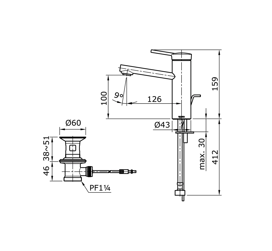 Single Lever Lavatory Faucet with 1¼" Pop-Up Waste • VASIL Series