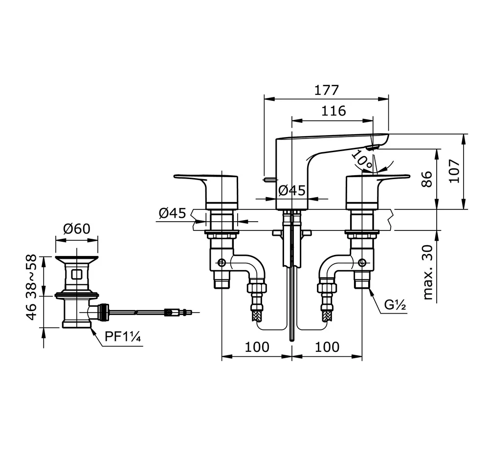 Water Pressure: 0.05MPa ~ 0.75MPa