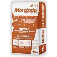 Mortar Mortindo M110 Perekat Keramik Lantai 40kg (Area Jabodetabek). Produk tunggal. Alias umum: granit tile, keramik dinding, keramik lantai, mortar, perekat bata ringan, semen instan, semen portland, ubin.