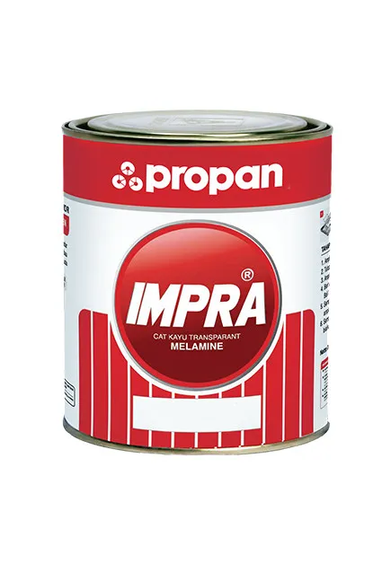 IMPRA MELAMINE SYSTEM adalah sistem finishing kayu 2 komponen (2K) dengan bahan dasar Amino dan Alkyd. Berbeda dengan bahan finishing jenis melamik lainnya, IMPRA Melamine System didesain secara khusus sehingga rendah kandungan formaldehyde-nya (low formaldehyde) sehingga relatif tidak berbau pedas dan pedih di mata dan lambat menguning (low yellowing). Lapisan finishing Impra Melamine yang cukup tebal, halus dan rata sangat tepat diaplikasian untuk mebel dan interior dengan gaya modern-minimalis sehingga memberikan kesan lebih mewah dan elegan. Melamine Sistem terdiri dari Impra Melamine Sanding Sealer dan Impra Melamine Lacquer. Fungsi & Keunggulan : • Rendah kadar formaldehyde (low formaldehyde) • Tahan gores • Lambat menguning (low yellowing) • Tahan bahan kimia rumah tangga *Mohon tanyakan ketersediaan stok sebelum membeli. *Pengiriman menggunakan kurir toko ada minimum quantity pembelian. *Estimasi pengiriman menggunakan kurir toko 1-2 hari kerja setelah transaksi diterima.