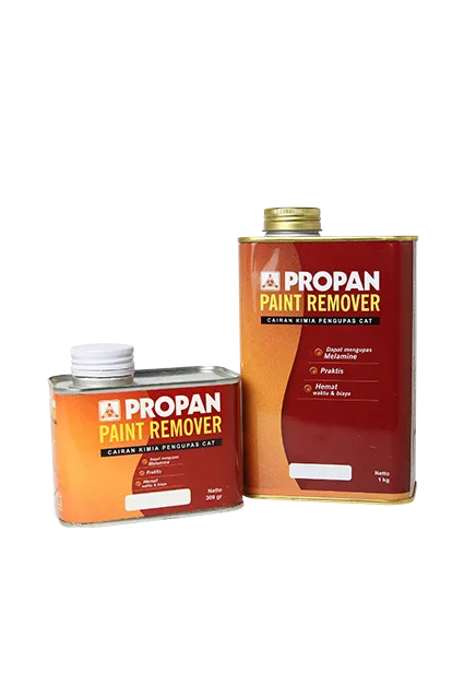 Adalah campuran bahan kimia yang efektif sebagai pengupas cat. PROPAN PAINT REMOVER PPR-730 efektif sebagai pengupas cat dua komponen dan satu komponen, seperti: cat sintetik, enamel, duco, lacquer, baking, printing, politur, cat tembok, PU 2K, acid curing/melamine dan lain-lain.