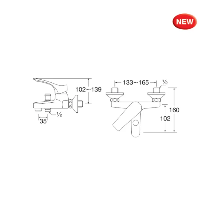 San-Ei SK27351-X, perangkat keran mixer yang dirancang untuk digunakan di atas bak mandi atau di bath tub karena memiliki spout atau cerat keran yang dapat digunakan untuk mengisi bak mandi atau bath tub dan memiliki outlet air untuk memasang selang shower. Perangkat keran mixer San-Ei ini merupakan perangkat yang dipasang pada permukaan dinding dan semua unit perangkat tersebut terlihat.