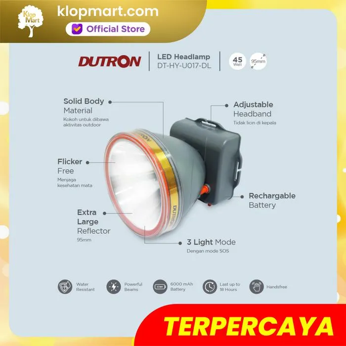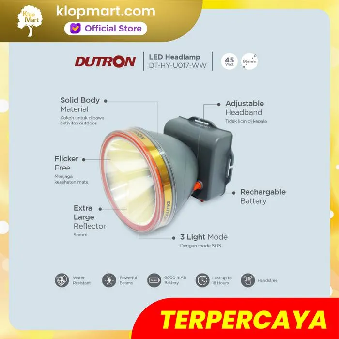 Saat baterai penuh senter kepala dapat digunakan hingga 18 jam