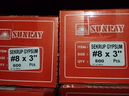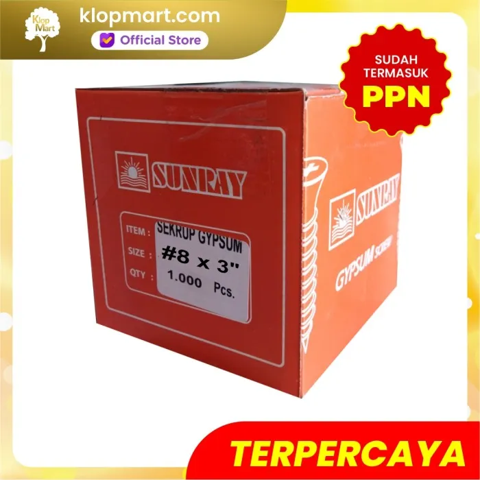 Untuk mendapatkan Faktur Pajak harus konfirmasi sebelum transaksi, transaksi tanpa konfirmasi tidak mendapatkan Faktur Pajak. Skrup Gypsum Merk Sunray ukuran 7cm - 8x3" Isi : 1000pcs