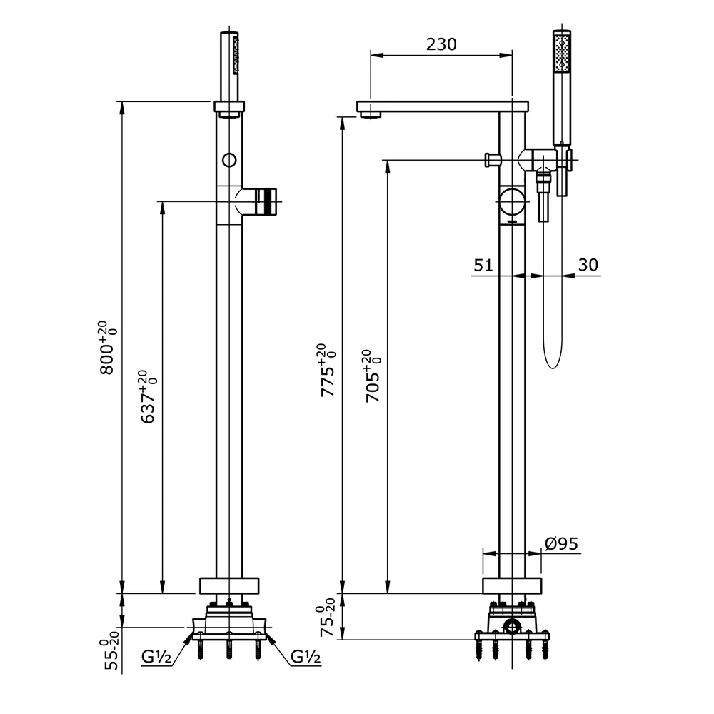 Floor Standing Bath & Shower Set WIth Progressive Mixer
