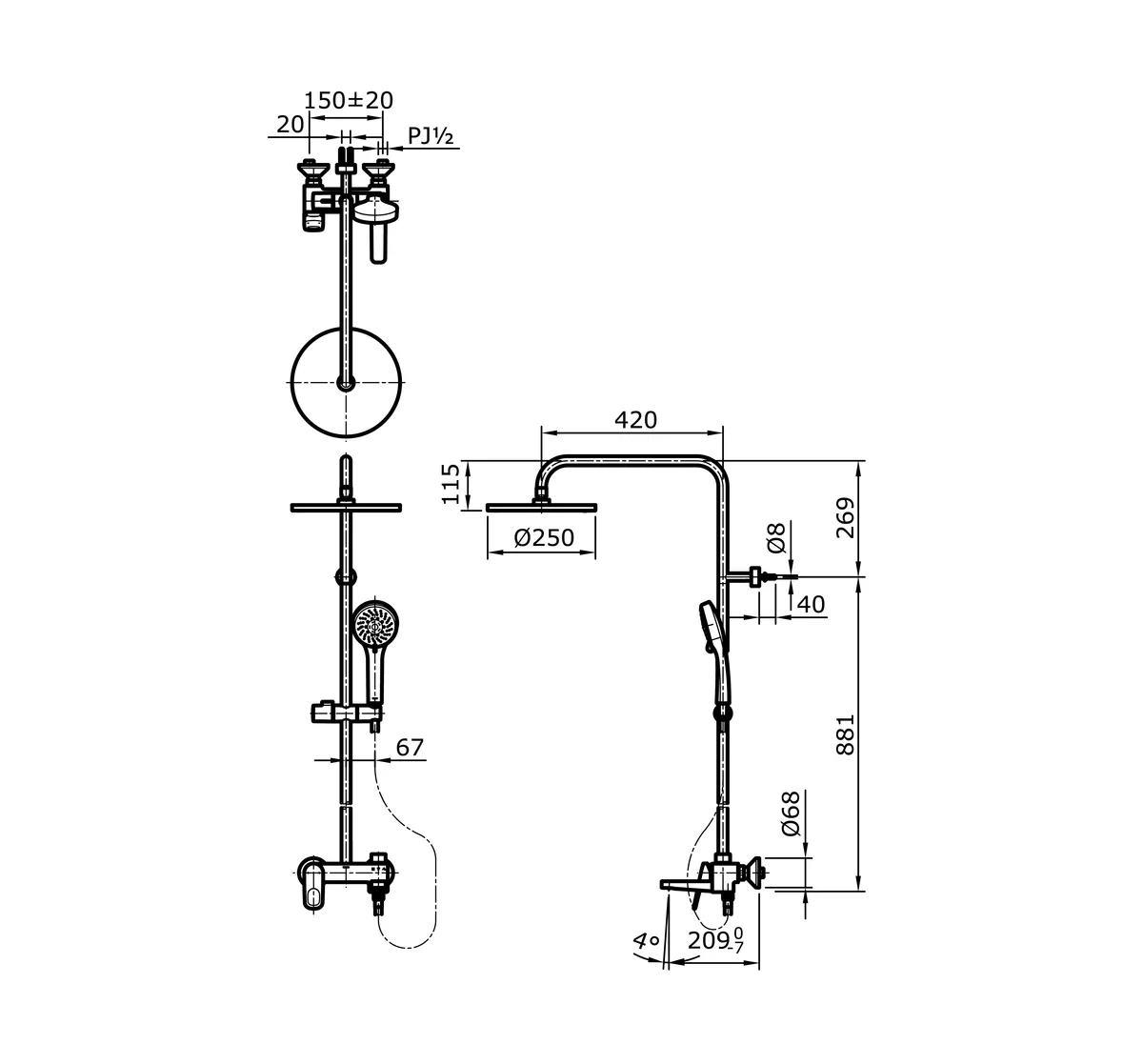 3 Way Shower Column Set