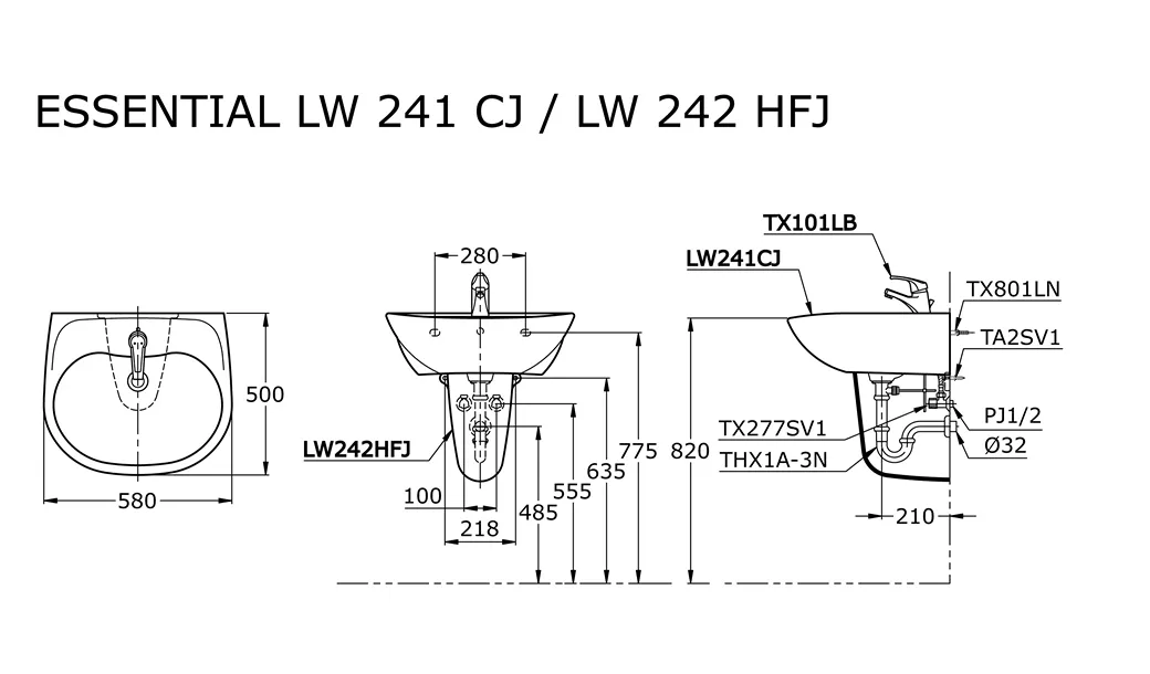 Toto Wastafel LW241CJ/LW240HFJ merupakan jenis wastafel yang digantung pada tembok tetapi memiliki half pedestal yaitu kaki atau penyangga yang tidak mencapai ke lantai dan hanya menutupi pipa saluran pembuangan air.