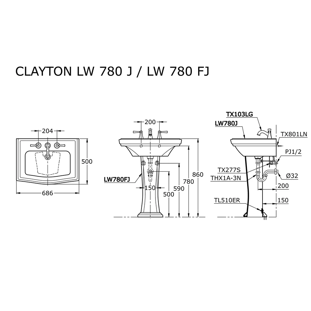 Toto Wastafel LW780J/LW780FJ memiliki kaki/penyangga yang dapat menutup pipa wastafel, dilengkapi juga dengan lubang pembuangan luapan air di bagian belakang (rear overflow) yang berfungsi untuk menjaga agar air di dalam wastafel tidak meluap dan membasahi kamar mandi terutama jika saluran pembuangan wastafel dalam keadaan tersumbat yang menyebabkan air tidak mengalir dengan lancar ataupun saat kita lupa menutup kran/keran saat sedang mengisi air pada wastafel tersebut.